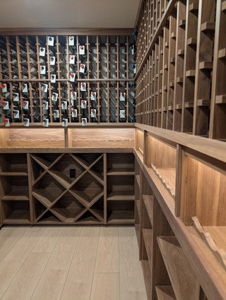 Custom Walnut Wine Cellar: Holds nearly 1,200 bottles, handcrafted for our client’s collection, and powered by a Wine Guardian temperature and humidity control system.